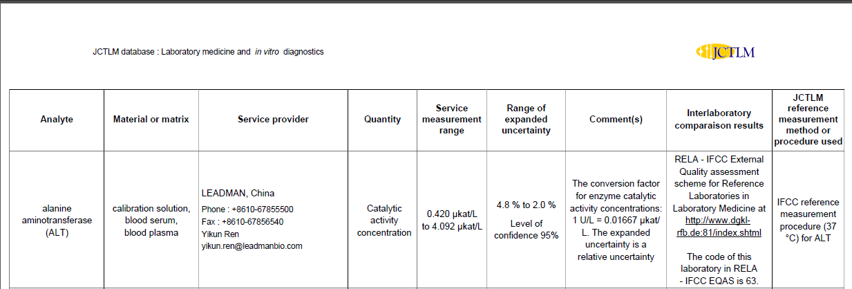 2021年,进入JCTLM参考测量服务实验室数据库